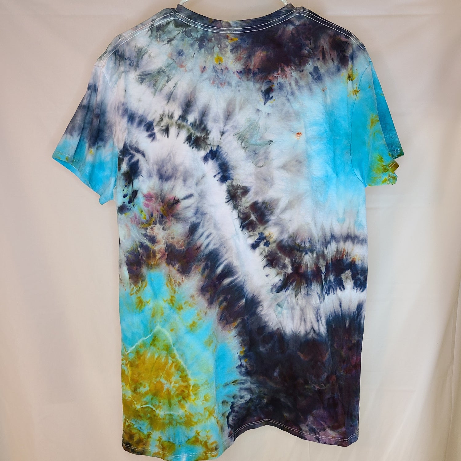 One of a kind ice dyed unisex L crew neck tee shirt. Pigments from local dye supplier.